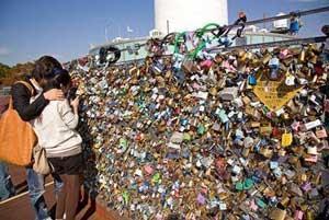 N Seoul Tower di kawasan Namsan Park merupakan lokasi romastis lainnya. Daya tarik dari menara tinggi ini, yaitu gembok cinta. Gembok cinta atau Love Lock adalah gembok biasa yang dipasang di beberapa sudut N Seoul Tower yang telah disediakan.Tradisi memasang gembok cinta sudah populer sejak tahun 1990-an. Gembok cinta ini dimulai oleh sepasang kekasih yang terinspirasi hal serupa di menara Tokyo. Selain itu, ada pasangan selebriti yang mengikat janji cintanya seperti pernah ditanyangkan dalam acara “We Got Married” sehingga mengundang perhatian pasangan lain untuk ikut melakukan hal yang sama. Disana banyak sekali bermacam-macam gembok, dari yang biasa, bentuk love, borgol, dengan berbagai macam tulisan berisi harapan dan cita-cita pasangan bahkan nama kita masing-masing yang konon membuat hubungan semakin awet. Setelah gembok dikunci sepasang kekasih tersebut bersama-sama menaiki N Seoul Tower kemudian membuang kunci gembok dari ketinggian.
